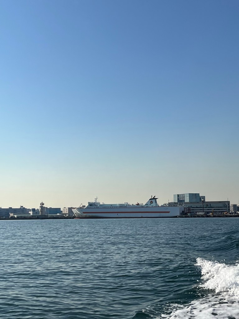 12月の終わり,ゆりかもめで日の出駅まで行き、そこから小さなボートに乗って東京湾へ出た。