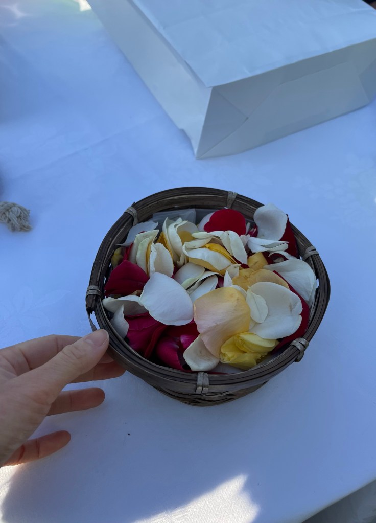 その後、お酒とお花をみんなで海へ入れた。
