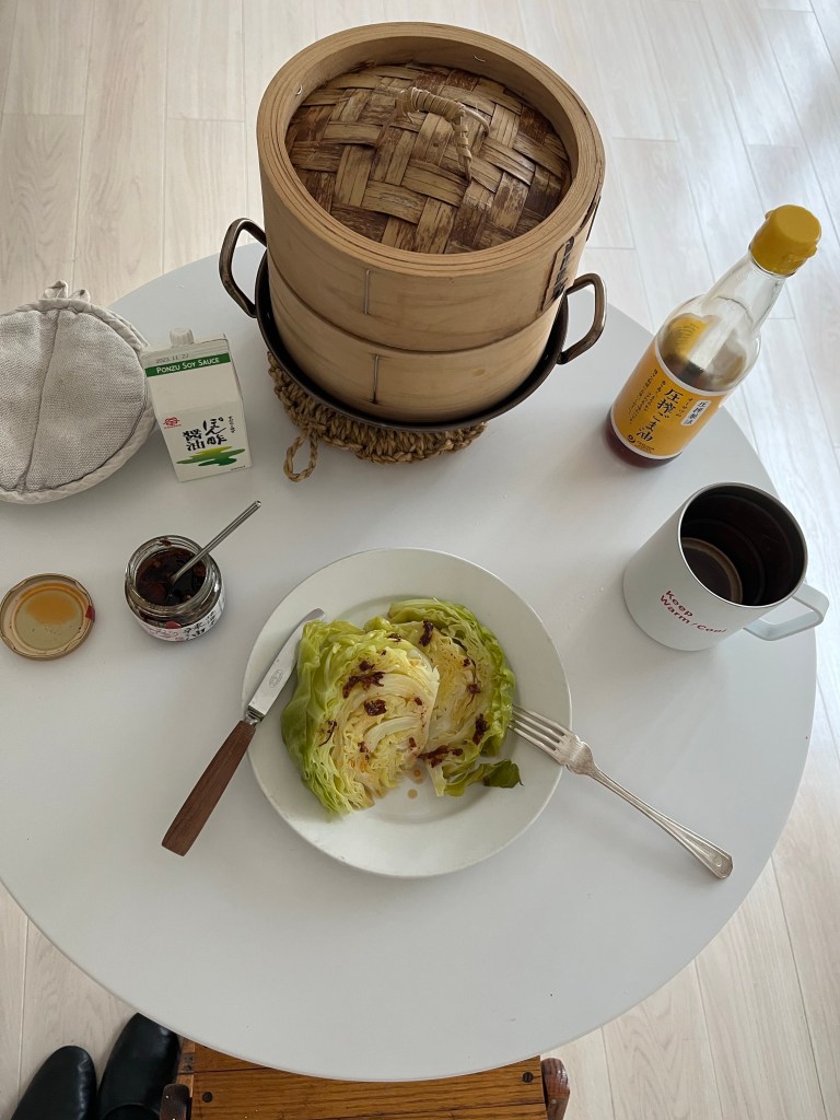 ポン酢と胡麻油と海老辣油をかけて食べた。