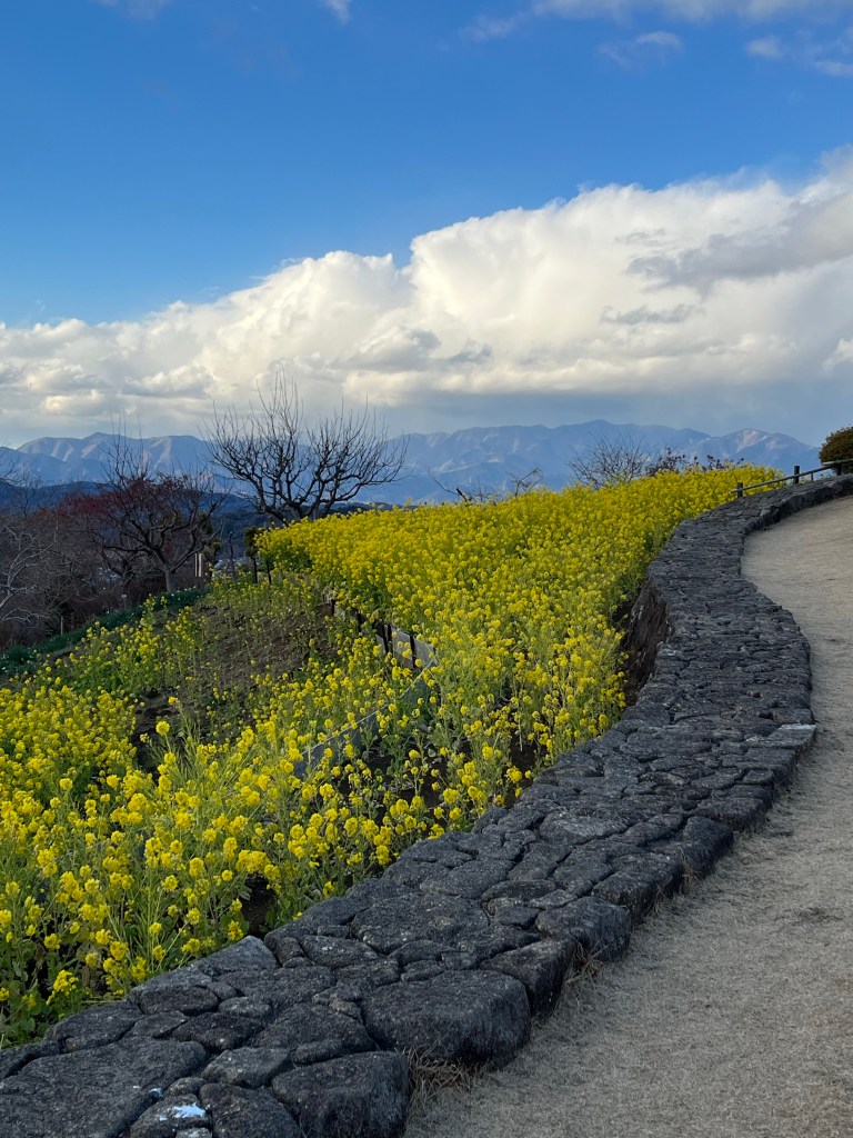 先輩が毎年行っている場所でいつか行きたいと思っていた場所。1月に咲いてる菜の花ってあるんだ…。