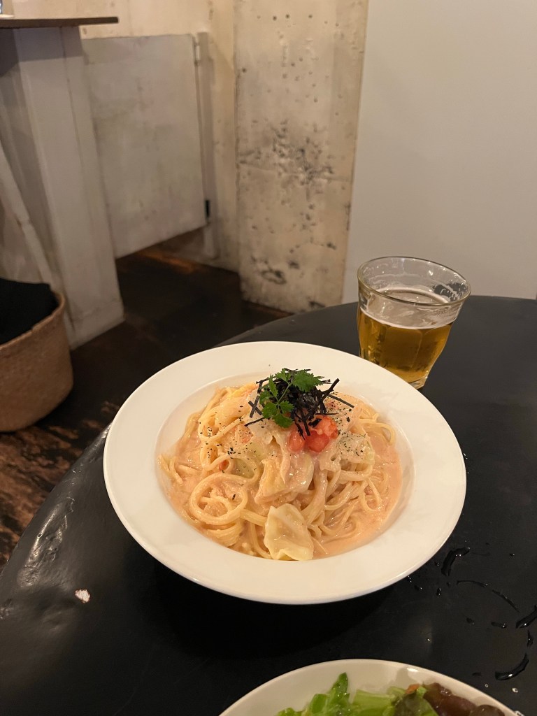 キャベツと明太子のパスタを食べる。(先輩も同じのを頼んだので真似すんなよとケンカをうってみたが効かなかった)