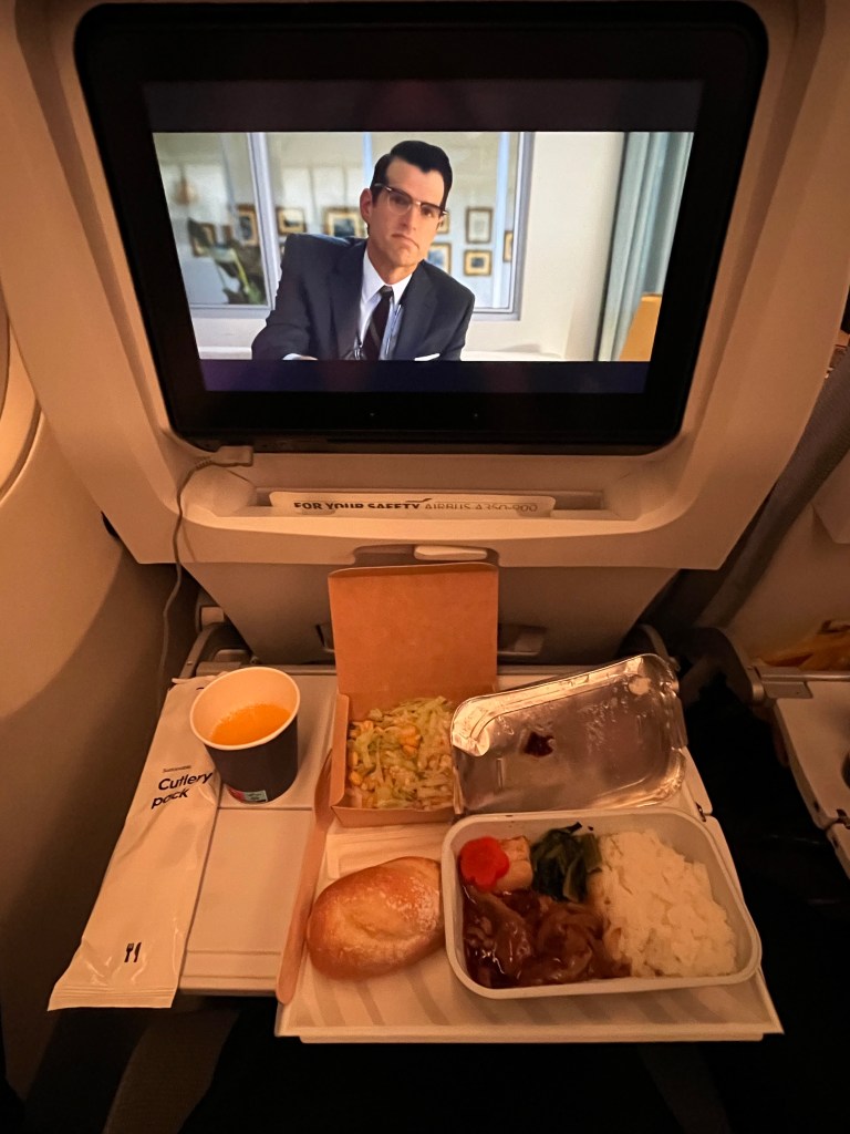 機内食はうまくなかった。