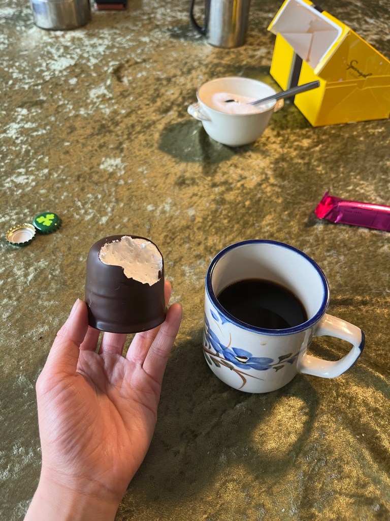 食後にはコーヒーと卵型のデンマークのお菓子。