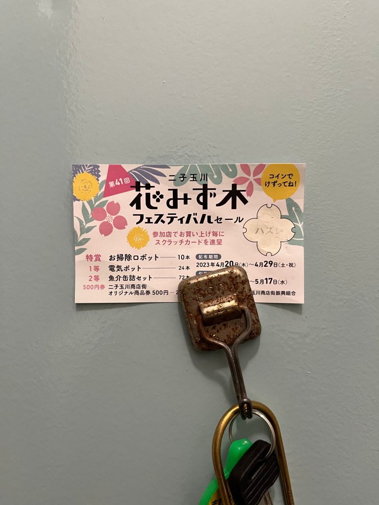 削りましょうか。と両手が濡れて財布が出せないわたしの代わりにおじさんがくじを削ってくれた。